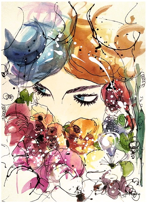Mixed Technique: Watercolor and enamels on high quality 300 grs watercolor paper.
